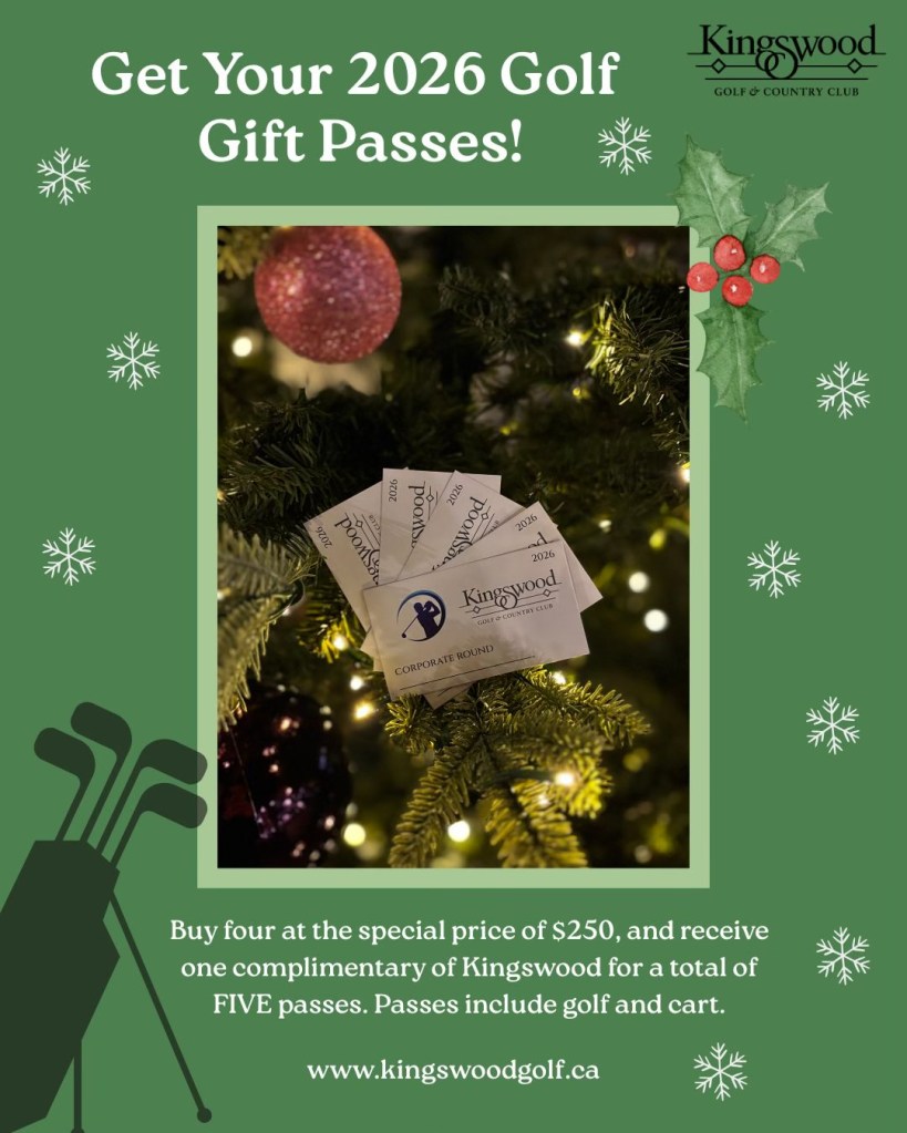 The Perfect Gift The perfect Christmas gift for the golfer in your family! 4 Golf passes including golf & cart for the 2026 season for only $250.00. *plus taxes* Follow the link below to purchase Holiday Passes *this special offer ends December 31st, 2025